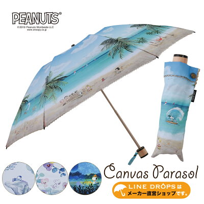 <PEANUTS>UVカット率99%以上の晴雨兼用日傘キャンバスパラソル折りたたみタイプ 50cmスヌーピー SNOOPYシルバーコーティング加工の涼しい日傘【57242-43】(レディース プレゼント 紫外線 女性用 母の日 ギフト 遮光 遮熱)