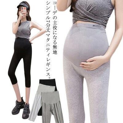 コーデの主役になる無地シンプル7分丈マタニティレギンス。