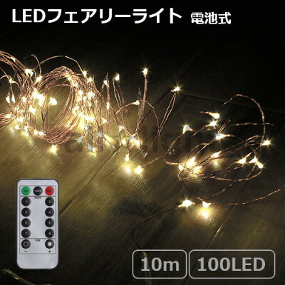 イルミネーション 電池 ホーム ジュエリーライト 100球 10m リモコンつき 電球色 led ライト フェアリーライト 室内 タイマー機能 ワイヤーライト ガーランド ガーランドライト クリスマス キャンプ 樅 柊【ゆうパケ送料無料】