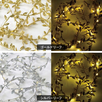 SPICE(スパイス)LEDガーランド リモコン付き 50球(リーフ型 葉っぱ イルミネーション LEDライト ツリー 飾り付け 飾り 照明 ライト シンプル パーティ イベントゴールド シルバー グリーン)