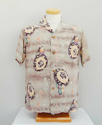 品番 SS34468 価格 9,800円(税抜) 素材 レーヨン壁チリメン 社名 東洋エンタープライズ 株式会社 ブランド SUN SURF サンサーフSUN SURF サンサーフ ハワイアンシャツ(半袖) SUN SURF サンサーフ ハワイアンシャツ(半袖) SS34468 : 2009 SunSurf サンサーフ LOVERS UMBRELLA * 年代:1950年代中期 * 素材:レーヨン壁縮緬 * プリント:オーバープリント 着物姿の男女が相合傘で雪の中を散策する情景を幻想的に描いたこの作品は、生地のコンバーターであった「S・ハタ商店」の副社長キヨノ・ナカムラが企画するチェリーブロッサム・ブランドの和柄。