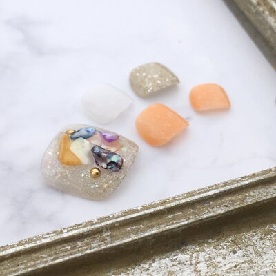 フットネイル ネイルチップ ペディチップ 足用ネイルチップサイズが選べるペディキュアつけ爪ジェルネイルでワンランク上のチップを是非!夏ネイル 花火大会や浴衣 旅行やビーチに!人気ネイル トレンドネイル 【1557】シェルクラッシュオレンジゴールド