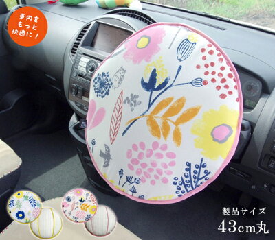 ハンドルカバー 軽自動車 北欧 かわいい おしゃれシートクッションにもなる花柄のハンドルカバー[約43cm丸]ブルー・ピンクハンドル 熱い 防止 かわいい カジュアル ポップ シートクッション 車用 円形 丸型【9410159】ミルカ ハンドルカバー