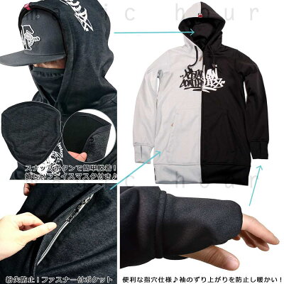 ファスナー付きカンガルーポケット、脱着可能なフェイスマスク、指穴付きの袖など機能性も充実! サイズ 身長, 胸囲 (cm) XS: 151-159, 77-85 S: 158-166, 83-91 M: 165-173, 89-97