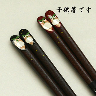 箸 親子箸 蒔絵 ふくろう 黒・赤・子供 3膳 紙箱入り【名入れ無料】かわいい 贈り物 お土産
