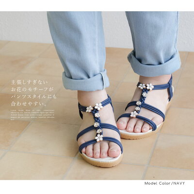 サンダル レディース リゾート かわいい 花 歩きやすい バックストラップ ビジュー ウェッジヒール ウエッジサンダル おしゃれ 脱げない 走れる ローヒール キッズ 女の子 ジュニア プール ビーチ 海 編込み ラインストーン ブラック 黒 ネイビー ベージュ 2274 送料無料