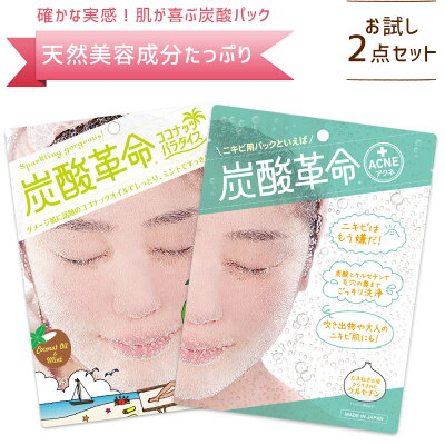 炭酸パック お試し【炭酸革命 2個セット】アクネ+ココナッツ ニキビ パック 炭酸 パック リフトアップ フェイスパック 炭酸洗顔 ほうれい線 美容液 ビタミンc誘導体 小顔 毛穴 クレンジング 目元 口元